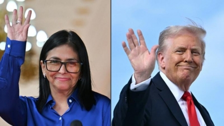 ووصف ترامب قيادة رودريغيز بأنها "بالغة القوة"، كاشفا أن الولايات المتحدة تحصل على حصة من إنتاج النفط الفنزويلي.