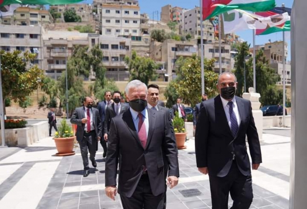 ورافق جلالته، رئيس الديوان الملكي الهاشمي يوسف حسن العيسوي، ومدير مكتب جلالة الملك، جعفر حسان.