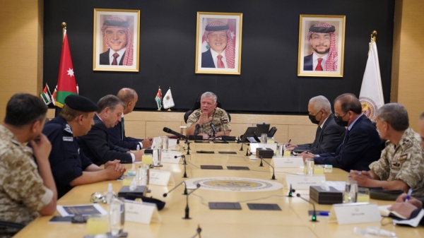 الرأي نيوز - ترأس جلالة الملك عبدالله الثاني، الثلاثاء، اجتماعا في المركز الوطني للأمن وإدارة الأزمات للوقوف على آخر التفاصيل المتعلقة بتسرب الغاز الذي حصل بالعقبة يوم أمس الاثنين والآثار الناجمة عنه.