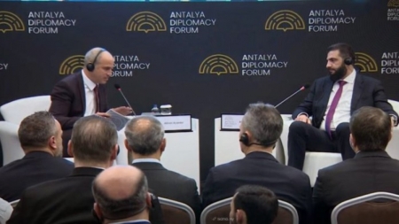 وقال الشرع، الجمعة، خلال جلسة حوارية للرئيس في منتدى أنطاليا بدورته الخامسة المنعقد في تركيا تحت شعار "التعامل مع حالات عدم اليقين عند رسم المستقبل"، إن الظروف التي تعيشها المنطقة اليوم صعبة وتحتاج حلولاً استثنائية، وسوريا تتحمل المسؤوليات وتواجه التحديات بصلابة شعبها والمحبين من دول المنطقة.