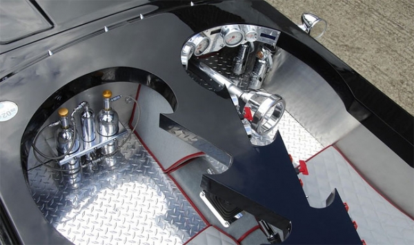 وكأن هذا ليس كافياً لتمييز هذه السيارة الغريبة، نجد أنها قد استوحت تصميمها من سيارة باتمان، الى جانب حملها لمحرك نفاث مخيف يطلق من أنابيب العادم الخاصة به ألسنة نارية حقيقية بطول 50.8 سم، وهو ما يتعدى ارتفاع السيارة الكامل.