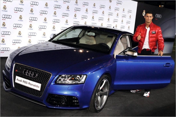 اودي هي الراعي الرسمي لنادي ريال مدريد في اتفاق خاص يجعلها تقدم لكل لاعبي النادي أي سيارة يختارونها من العلامة الألمانية حسب تفضيلاتهم المختلفة، وهنا تظهر لنا شخصية رونالدو المحبة دوماً للسرعة والأداء العالي والرقي.