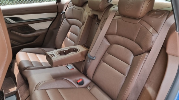 داخلياً، نلاحظ 4 شاشات أمام السائق وشاشة بالجهة الخلفية للتحكم بالمكيف، وعلى الرغم من إنخفاض السقف بالجهة الخلفية إلا ن مساحة الرأس مقبوله جداً للركاب حيث قام مهندسو بورشه برفع السقف بنسبة 47 ملم وخفضوا المقاعد.
