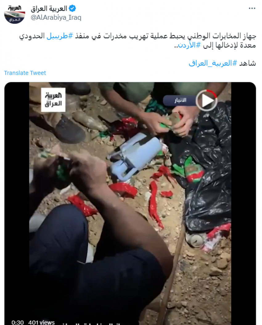 الرأي نيوز  - احبط جهاز المخابرات الوطني العراقي عملية تهريب مخدرات في منفذ طريبيل الحدودي، كانت معدة لإدخالها إلى الأردن.