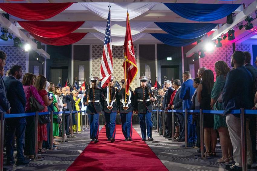 مساء الخير! أشكركم جميعًا على الحضور للاحتفال معنا اليوم بمناسبة مرور 247 عامًا على استقلال الولايات المتحدة الأمريكية.