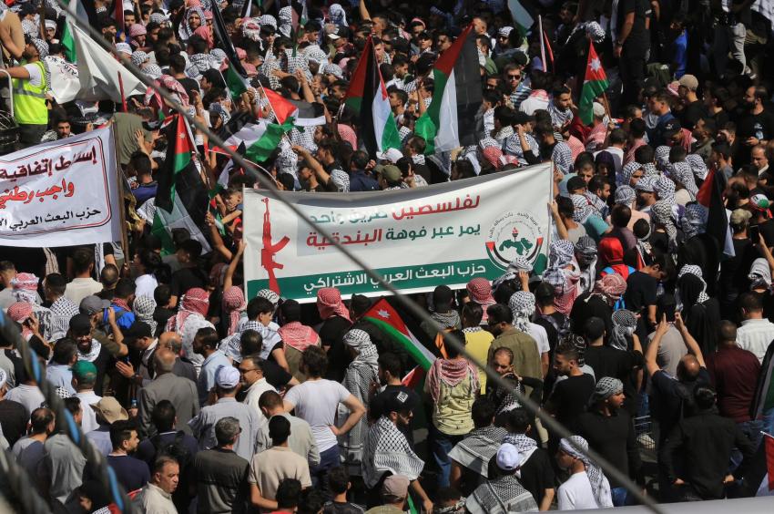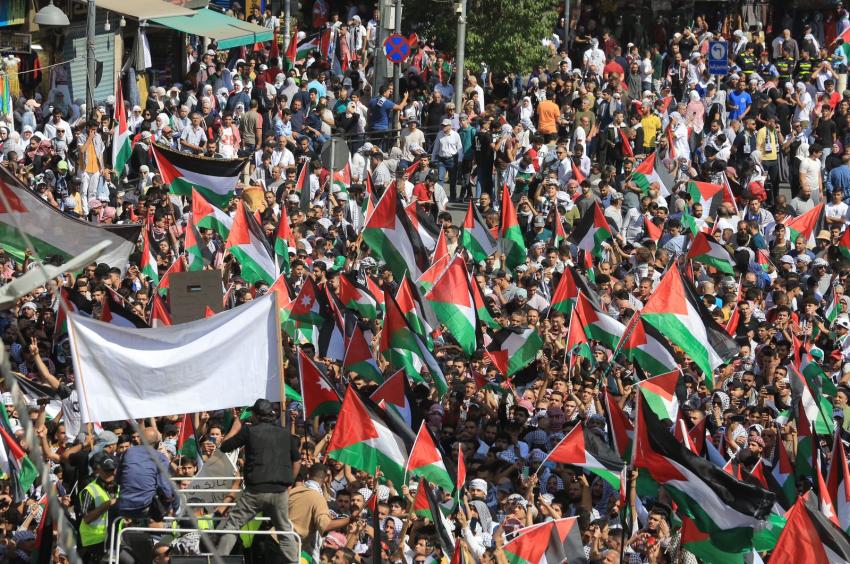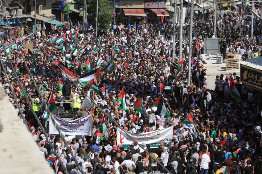 في الأردن خرج الآلاف إلى وسط البلد أمام المسجد الحسيني وفي ساحة النخيل منذ ساعات الصباح الباكر من اليوم الجمعة؛ للمشاركة في مسيرات ضخمة دعما للمقاومة الفلسطينية.
