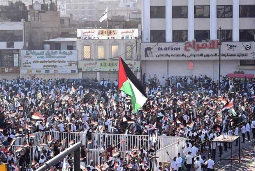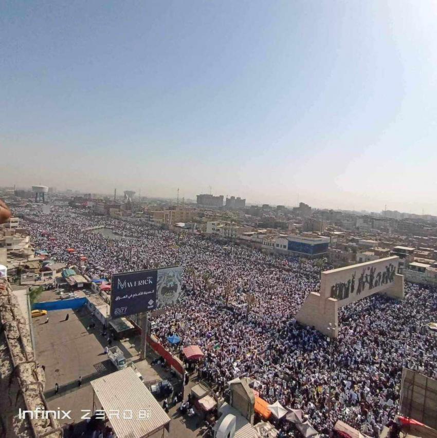 وفي العاصمة العراقية بغداد خرجت مسيرة مليونية إلى ساحة التحرير، لنصرة فلسطين وصفت بالطوفان البشري.