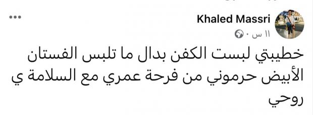بكلمات مؤثرة ودع الشاب «خالد» خطيبته بعد قصفها من قبل الاحتلال قائلا: «خطيبتي لبست الكفن بدل ما تلبس الفستان الأبيض.. حرموني من فرحة عمري مع السلامة ياروحي» وفقا لما نشره عبر حسابه الشخصي على مواقع التواصل الاجتماعي على «فيسبوك».