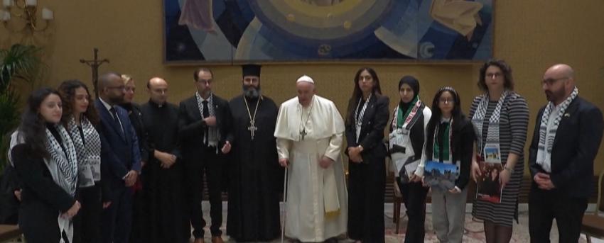 الرأي نيوز  - كعلامة تضامن مع ما يحصل في قطاع غزة، استقبل البابا فرنسيس، صباح اليوم الأربعاء، وفدًا يمثّل عائلات فلسطينيّة أتت من غزة، أو لها أقارب في غزة.