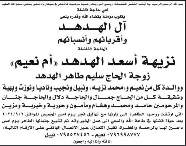 الحاجة نزيهه اسعد الهدهد في ذمة الله