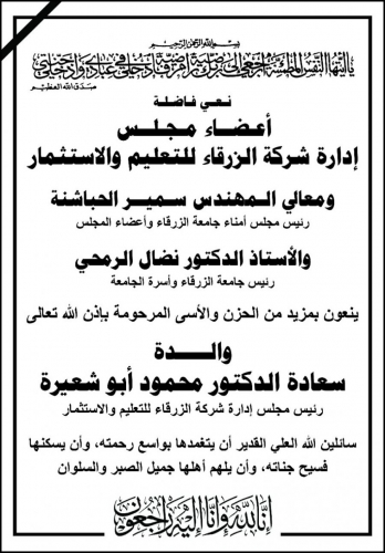 والـــــدة الدكتور محمود أبو شعيرة في ذمة الله