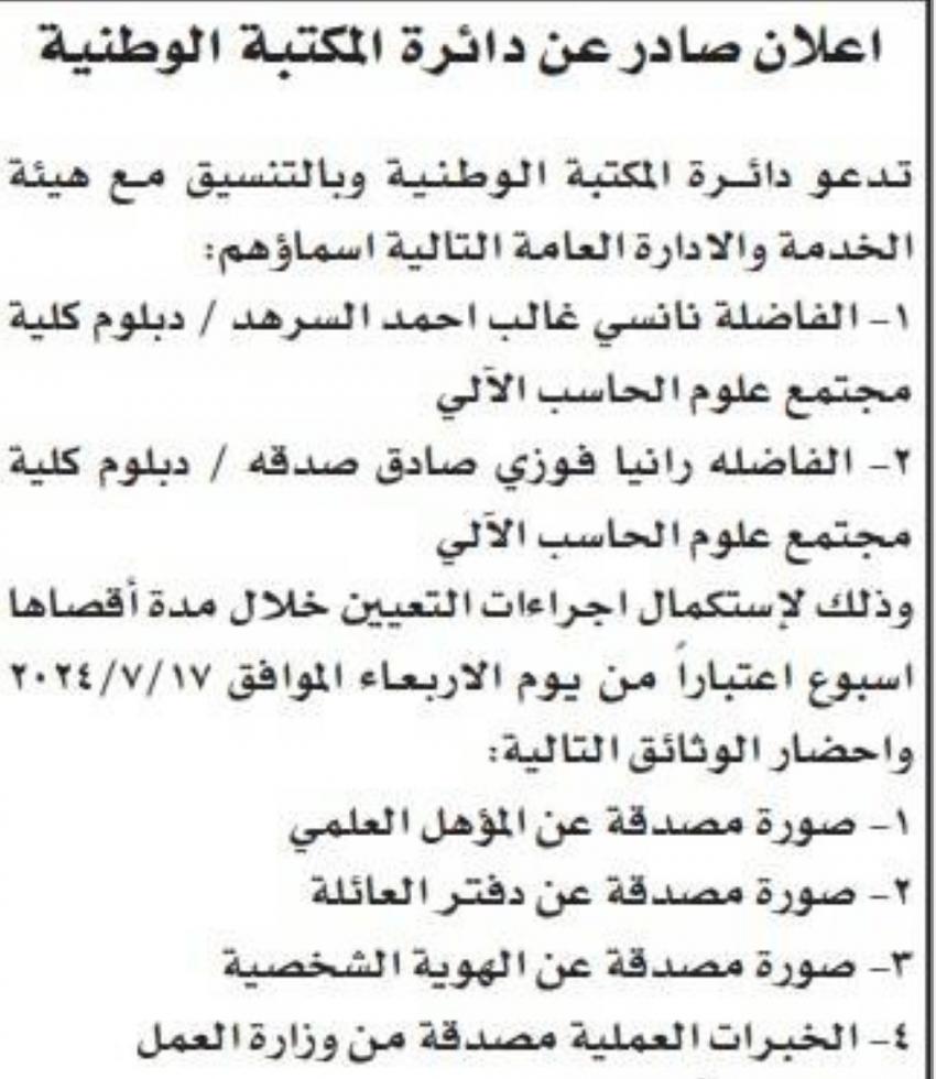 مدعوون للتعيين في مؤسسات حكومية (أسماء)