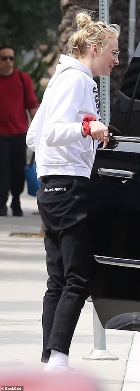 والتقطت عدسات المصورين النجمين أثناء عودتها من المطار إلي منزلهما في لوس أنجلوس حيث ارتدت صوفي تيرنر الشهيرة بـ "سانسا" وهو اسم شخصيتها في مسلسل game of thrones شارة كتب عليها "متزوجة حديثا".