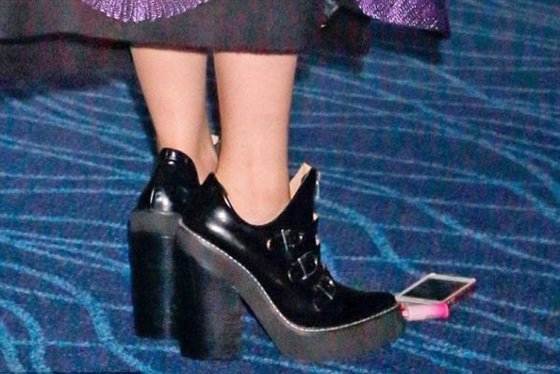 وكانت النجمة البالغة من العمر 28 عاماً ترتدي ملابسها الغريبة مع الماكياج الصاخب، كما دهست هاتفها.