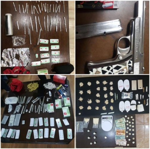 وفي العاصمة تعاملت كوادر إدارة مكافحة المخدرات مع ١٢ قضية ألقت القبض خلالها على ١٢ شخصا من مروجي وحائزي المواد المخدرة وضبطت بحوزتهم كميات كبيرة من تلك المواد وخمسة أسلحة نارية ، ومن بين تلك القضايا اثنتان في منطقة سحاب شرق العاصمة حيث جرى في الأولى مداهمة منزل مطلوب من ذوي الأسبقيات في قضايا المخدرات والذي عثر داخله بعد تفتيشه على ١٤ كفا من مادة الحشيش المخدرة و ٢٠٠٠حبة كبتاجون و ٧١٨ حبة من حبوب الترامال المخدرة فيما زال البحث جارياً عن ذلك المطلوب ، في حين ألقي القبض في القضية الثانية على مروج بعد مداهمة منزله وضبط بحوزته كمية من مادة الكوكائين وكميات من الحبوب المخدرة وسلاح ناري محشو بالذخيرة.
