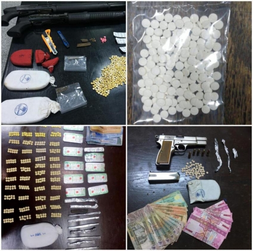 أما جنوب العاصمة فقد تمت مداهمة ثلاثة من مروجي المواد المخدرة من المطلوبين وذوي الأسبقيات في قضايا المخدرات ضمن ثلاث قضايا منفصلة، وألقي القبض على الأول في منطقة ناعور داخل مركبته بعد أن حاول الفرار وصدم المركبة العسكرية التابعة للقوة الأمنية حيث تمت السيطرة عليه وتبين أن بحقه٩ طلبات وضبط بحوزته كف من مادة الحشيش وكميات أخرى من الحبوب والمواد المخدرة، كما والقي القبض على الثاني والمسجل بحقه ٤ طلبات داخل منزله في منطقة ضاحية الياسمين وبحوزته كمية من مادة الكوكائيين وكميات أخرى من مادة الحشيش والحبوب المخدرة وسلاح ناري ومبلغ مالي، أما الثالث فقد تمت مداهمة منزله في منطقة بيادر وادي السير وتبين أن بحقه ٣ طلبات وضبط بحوزته كف من مادة الحشيش وكميات من الحبوب المخدرة مختلفة الأنواع.