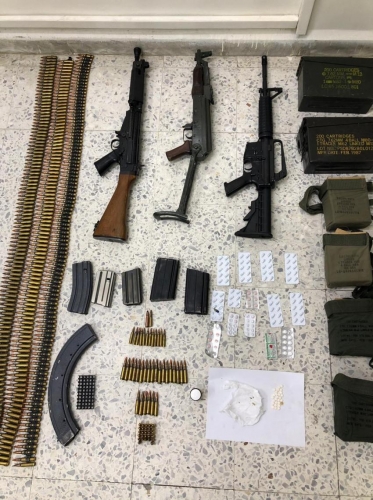 واضاف الناطق الاعلامي انه القي القبض على الشخص الاول في منزله وضبط داخل المنزل بعد تفتيشه على ثلاثة اسلحة نارية اوتوماتيكية وكمية من العتاد لتلك الاسلحة اضافة الى كمية من الحبوب المخدرة المتنوعة فيما القي القبض على الشخص الاخر في منزله وضبط بحوزته كميات من الحبوب المخدرة وبذور لنبتة الماريجوانا المخدرة وعتاد لأسلحة متنوعة وبوشرت التحقيقات.