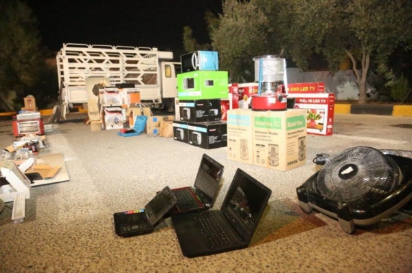 وتابع الناطق الإعلامي أنه ومن خلال التحقيقات مع الشخصين المقبوض عليهما جرى ضبط الـ ٣٠ شاشة التي تمت سرقتها من محل بيع الأجهزة الكهربائية في منطقة حطين بعد أن أُخفيت في منزل احدهما ، بالإضافة لمجموعة كبيرة من الأجهزة الكهربائية والمواد التموينية والمسروقات الأخرى التي تمت سرقتها من عدة محال تجارية ، وما زال التحقيق والبحث جار عن الشريك الثالث .