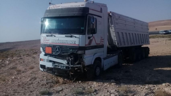 صرحت إدارة الإعلام في  الدفاع المدني بان كوادر الإنقاذ والإسعاف في مديرية دفاع مدني الكرك تعاملت صباح الاربعاء مع حادث تصادم وقع ما بين مركبة و تريلا على الطريق الصحراوي بعد القطرانة / مثلث الشركة العربية.