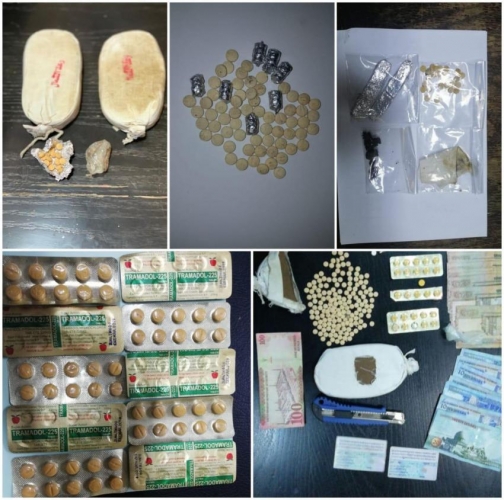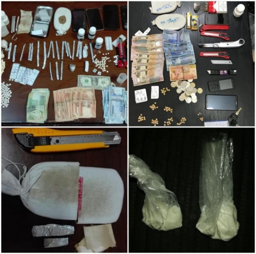 وأضاف الناطق الإعلامي أنه تم التعامل مع أربع قضايا في العاصمة ألقي القبض خلالها على 9 من مروجي المواد المخدرة ، اثنان ألقي القبض عليهما داخل مركبة مسروقة في منطقة جاوا جنوب العاصمة أحدهما بحقه 7 طلبات والآخر بحقه طلبان وبحوزتهما 5 كفوف حشيش و1000 حبة مخدرة ومبلغ مالي، كما وألقي القبض على شخصين داخل أحد المنازل في منطقة المنارة شرق العاصمة وبحوزتهما كفين وربع الكف من مادة الحشيش وكمية من حبوب الكبتاجون المخدرة، في حين ألقي القبض على اثنين آخرين في منطقة وادي الرمم داخل مركبة وبحوزتهما كف ونصف الكف من مادة الحشيش وكمية من الحبوب المخدرة مختلفة الأنواع، أما في شمال العاصمة فقد جرت مداهمة أحد المنازل وألقي القبض على ثلاثة مروجين، وبتفتيش المنزل عُثر على كفين من مادة الحشيش وكمية من الحبوب المخدرة.