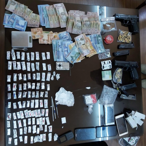 وتابع الناطق الاعلامي انه جرت مداهمة المواقع الثلاثة والقي القبض فيها على المشبوهين وستة اشخاص اخرين ، حيث ضبط في الموقع الاول 53 كيساً صغيراً يحوي مادة الكوكائين المخدرة المعدة للبيع ، و41 كيساً صغيراً تحوي مادة الكريستال المخدرة المعدة للبيع وكمية من الحبوب المخدرة وسلاح ناري ، فيما ضبط في الموقع الثاني كمية من مادة الهيروين المخدرة ، وفي الموقع الثالث ضبط كمية من المواد المخدرة وسلاح ناري .