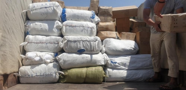 احباط تهريب شاحنة محملة بالالبسة والاحذية على الطريق الصحراوي- صور
