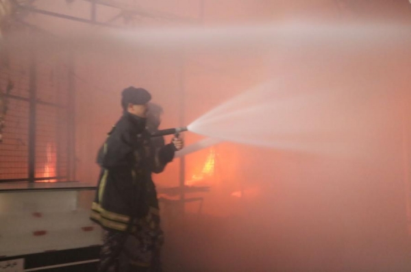 الدفاع المدني يخمد حريق عدد كبير من المحلات والبسطات في العاصمة
