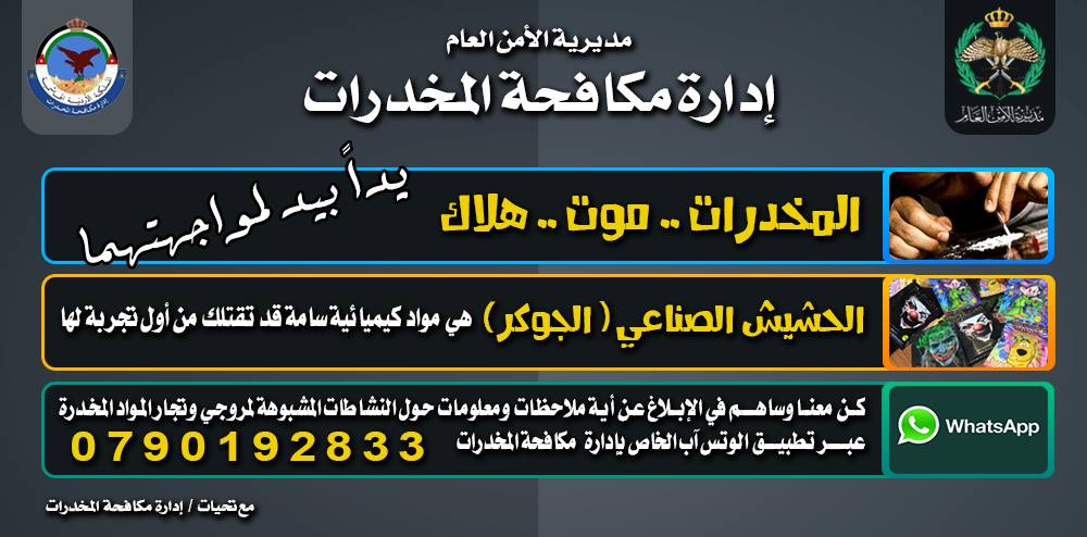 نشرت مديرية الأمن العام تحذيراً من المخدرات والجوكر .