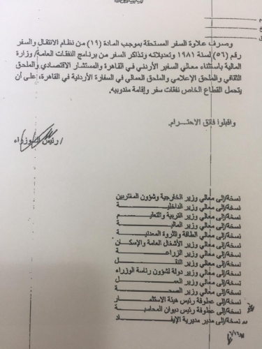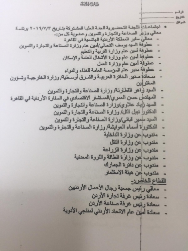 وتضمن الكتاب تسمية أعضاء الوفد المشارك في الاجتماعات، ويترأسه وزير الصناعة والتجارة والتموين طارق الحموري.