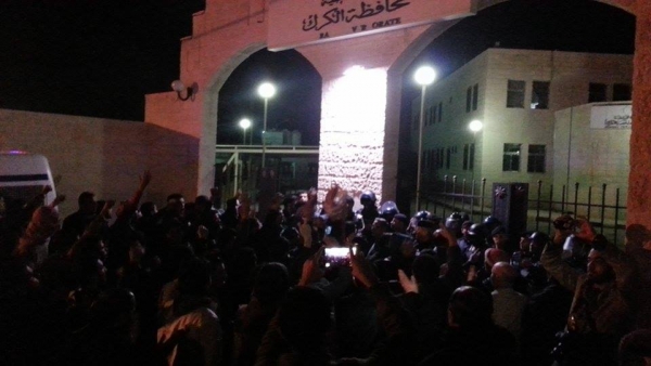 تجمهر المئات من ابناء محافظة الكرك عامه امام مبنى محافظة الكرك غاضبين ومحتجين على الصمت الحكومي حيال قضية الطيار الاسير لدى تنظيم داعش معاذ الكساسبه اثر تداول المواقع الالكترونيه بيانات منسوبة للتنظيم تمهل الحكومه الاردنيه 24 ساعه لتسليم ساجده الريشاوي مقابل الرهينه الياباني والطيار الكساسبه ونادى ابناء الكرك باصوات عاليه بان مسؤولية اي اذى سيلحق بالطيار الكساسبه ستتحمله الدوله الاردنيه مطالبين محافظ الكرك توفير المعلومات اللازمه قبل الانتقال للعاصمه عمان لتنظيم المهرجان الحاشد في ديوان ابناء الكرك والتوجه للديوان الملكي الهاشمي للمطالبه بسرعة التدخل والافراج عن الكساسبه