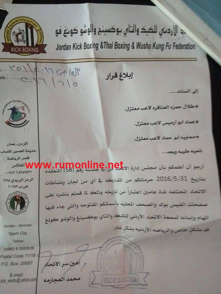 قرار نضعه أمام معالي وزير الشباب وعطوفة أمين عام اللجنة الاولمبية الاردنية .