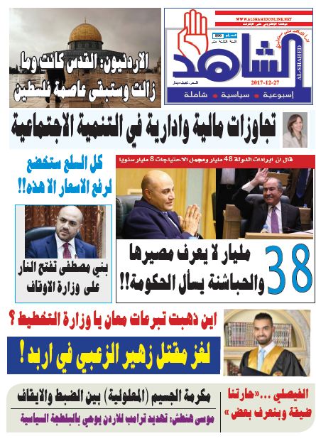الصفحة الاخيرة فيها صورة لدولة الرئيس هاني الملقي في عيد الميلاد المجيد يرتدي لباس بابا نويل وهو يوزع الهدايا على الاردنيين ..