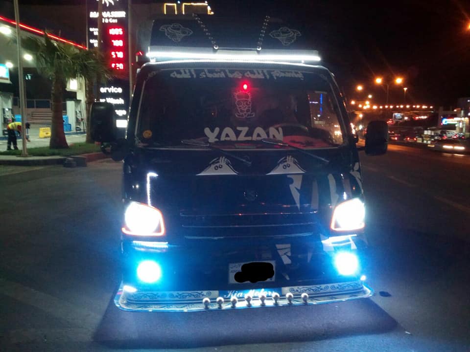 ضبط العاملون بادارة السير مركبة تضع عبارات غير لائقة بالاضافة الى تركيب انوار غير مسموح بها قانونياً، حيث تم حجز المركبة داخل ساحة الحجز وذلك لاتخاذ المقتضى القانوني.