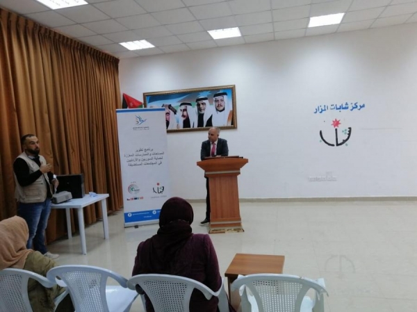 مجموعه من اصحاب القرار في لواء المزار يشاركون بفعاليه بعنوان (الحماية من العنف اللفظي الموجه للأطفال والنساء) في قاعة مركز شابات المزار
