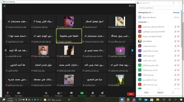 استمرار فعاليات اليوم الرابع من برنامج مهاراتي 2021 في مركز شابات سهل حوران عبر تطبيق زووم بحضور 30 مشاركة مع المدرب احمد سلامات .