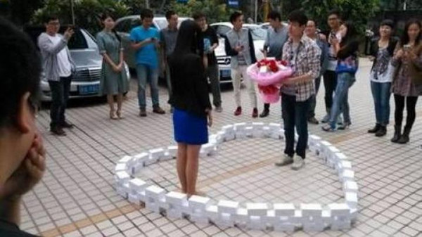 ويقول التقرير إن المبلغ الذي أنفقه الشاب من أجل إرضاء الفتاة الصينية يعادل مجموع الرواتب المالية لــ17 عاماً متواصلة بالنسبة لمتوسط الموظفين في الصين، بينما يعادل راتب الشاب ذاته لمدة عامين متواصلين.