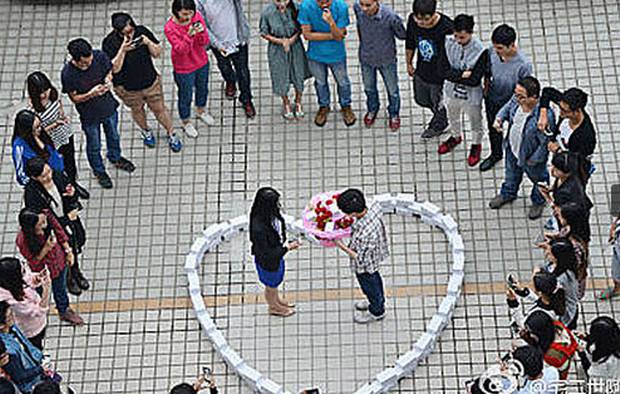 وعمد الشاب الصيني إلى ترتيب الهواتف الـ99 على الأرض على شكل قلب حب، ومن ثم دعا صديقته إلى هناك لتقديمهم إليها كمهر طالباً منها الزواج، إلا أنها رفضت الطلب، ورفضت قبول المهر المعروض عليها.