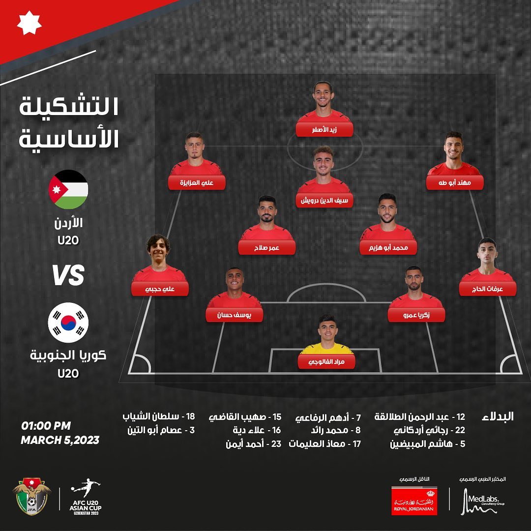 تعرف على تشكيلة مواجهة "النشامى" أمام كوريا وشاهد البث المباشر