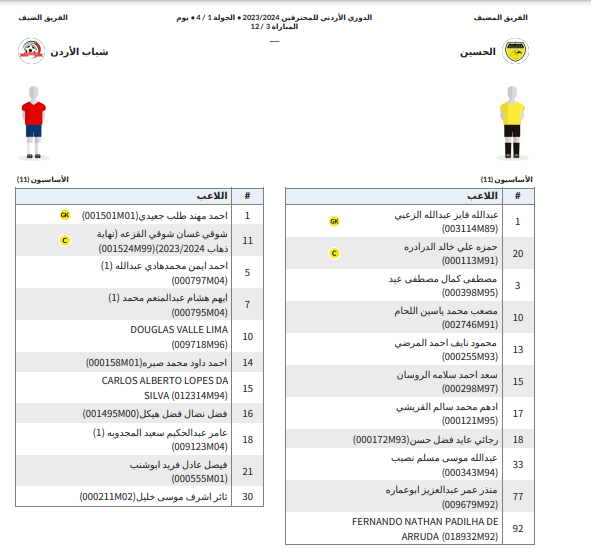 شاهد البث المباشر وتعرف على تشكيلة الفريقين: الحسين اربد في مواجهة شباب الأردن