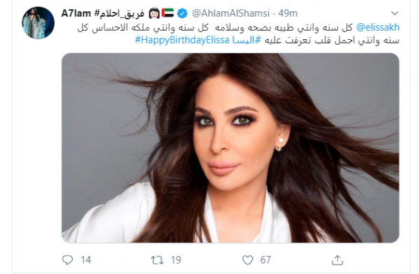 وكتبت أحلام عبر حسابها على تويتر، "كل سنة وأنتى طيبة بصحة وسلامة، كل سنة وأنتى ملكة الإحساس، كل سنة وانتي أجمل قلب تعرفت عليه".