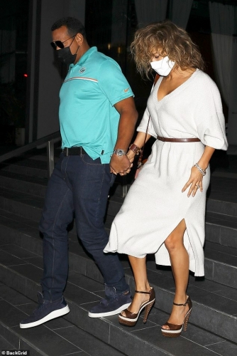 رصدت عدسات المصورين النجمة جنيفر لوبيز بصحبة خطيبها أليكس رودريجيز، حيث ارتديا الثنائي الكمامات وتناولا سويا عشاءً رومانسيا في أحد المطاعم الفاخرة فى هوليوود.