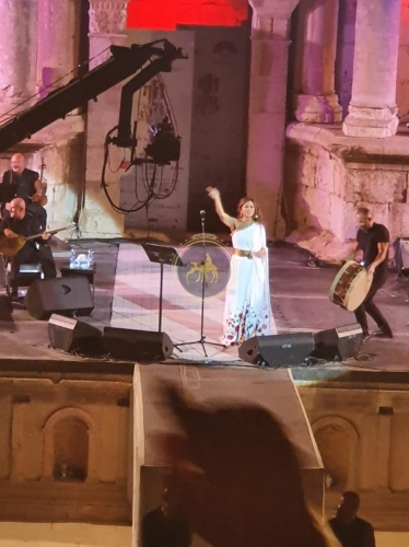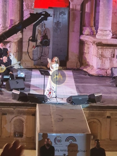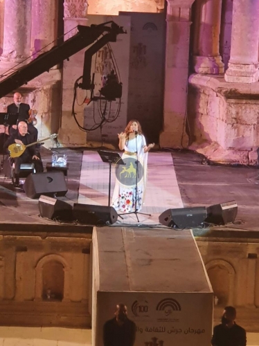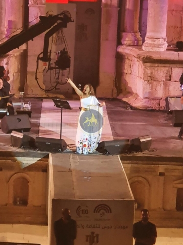 اعتلت الفنانة اللبنانية نجوى كرم خشبة المسرح الجنوبي في مهرجان جرش وبدأت الحفلة بتوجيه تحية للاردن