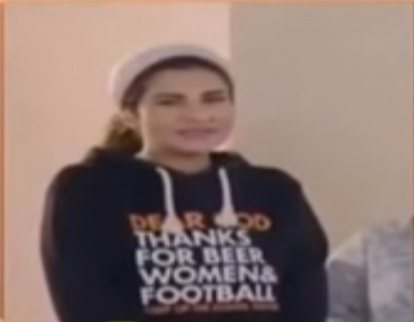 وكانت سعودة ظهرت في أحد مشاهد مسلسلها "المحتالة" بـ"تي شيرت" مكتوب عليها: "شكراً لله على البيرة، النساء وكرة القدم".