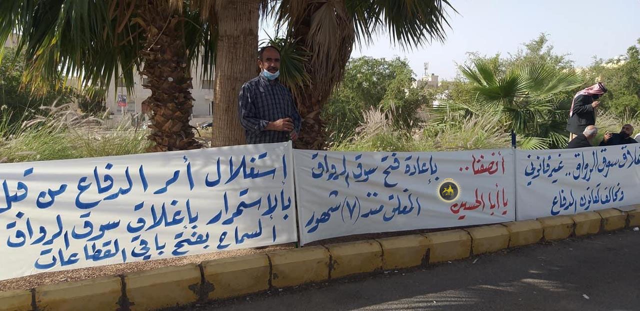 منذ ثلاثة أيام يعصتم العشرات من العائلات العقباوية من أمام البوابة الرئيسة لسلطة العقبة الاقتصادية الخاصة مطالبين بإعادة إفتتاح محلاتهم وبسطاتهم في سوق الرواق بالعقبة.