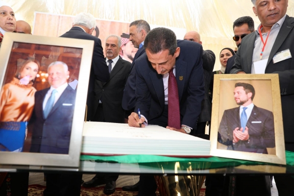 وقال رئيس جامعة عمان الأهلية الأستاذ الدكتور ساري حمدان خلال توقيعه على كتاب التهنئة في احتفال اقيم في حرم الجامعة بحضور عطوفة رئيس بلدية السلط الكبرى المهندس محمد الحياري والأساتذة نواب الرئيس والهيئة التدريسية والإدارية وحشد من طلبة الجامعة: