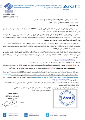 "أرسيف" يصنف مجلة الزرقاء للدراسات والبحوث الإنسانية في المرتبة السادسة عربيا