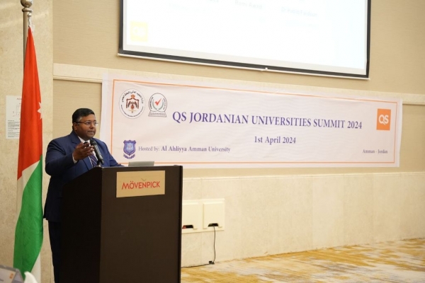 •وتحدث الدكتور آشوين فيرناندز المدير التنفيذي لمنظمة الكيو أس العالمية عن واقع الجامعات الأردنية وموقعها اليوم ضمن خارطة الجامعات العالمية، وتعرض لأهم التحديات التي تواجه الجامعات الأردنية وتَحُدّ من تقدمها عالمياً، موضحاً ذلك من خلال تقديمه لبعض المقارنات مع جامعات في المنطقة العربية.