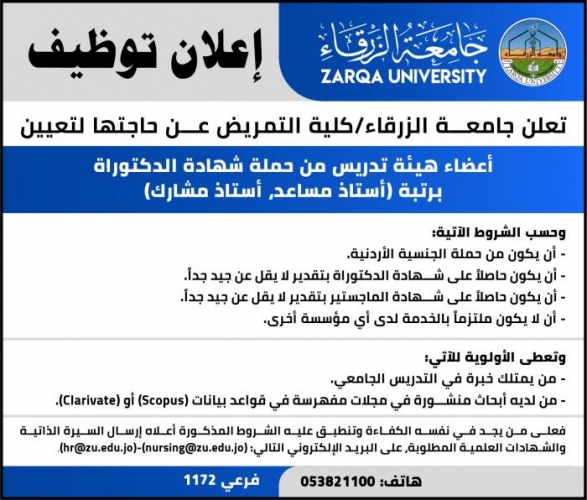 إعلانات توظيف من جامعة الزرقاء!
