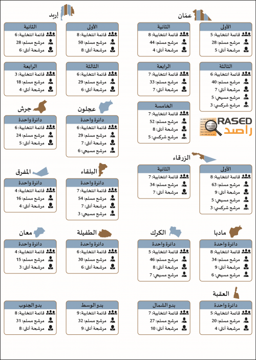 ضمن جهود راصد الرامية لدعم سير الإصلاح الانتخابي في الأردن، وفي إطار مراقبته لمجريات الانتخابات النيابية القادمة، قام فريق مكون من 120 مراقبة ومراقب محلي على جمع معلومات التقييم المعياري حول مجريات اليوم الأول من عملية الترشح. وذلك من خلال مجموعة من النماذج التي تم تصميمها ارتكازاً للممارسات الدولية المقارنة في هذا المجال.