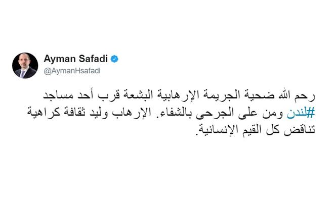 هذا ماقاله الصفدي عن حادث لندن الارهابي ؟ - صورة